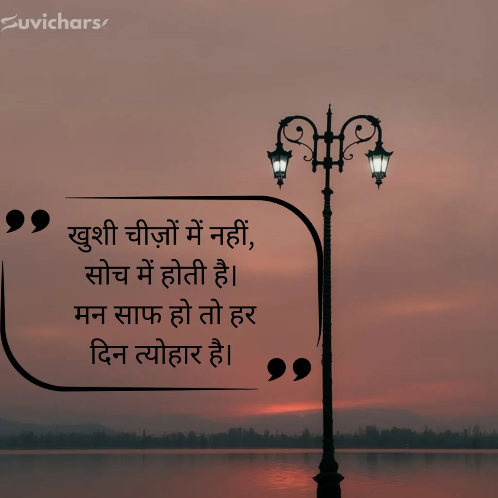 खुशी चीज़ों में नहीं, सोच में होती है।मन साफ हो तो हर दिन त्योहार है।