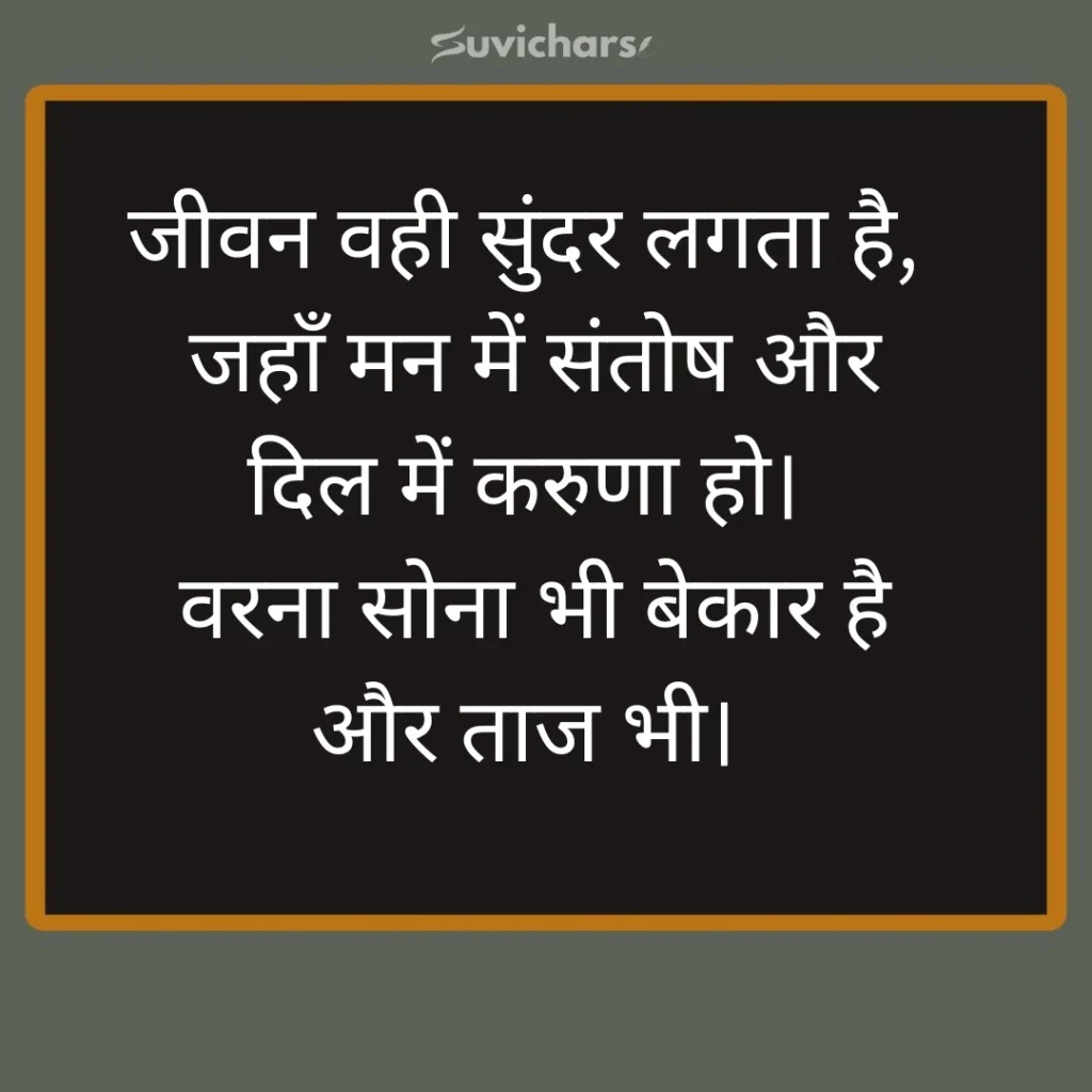 जीवन वही सुंदर लगता है,जहाँ मन में संतोष और दिल में करुणा हो।वरना सोना भी बेकार है और ताज भी।