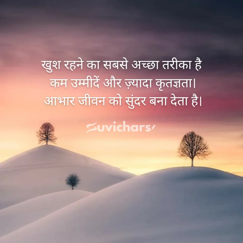 खुश रहने का सबसे अच्छा तरीका है कम उम्मीदें और ज़्यादा कृतज्ञता।आभार जीवन को सुंदर बना देता है।