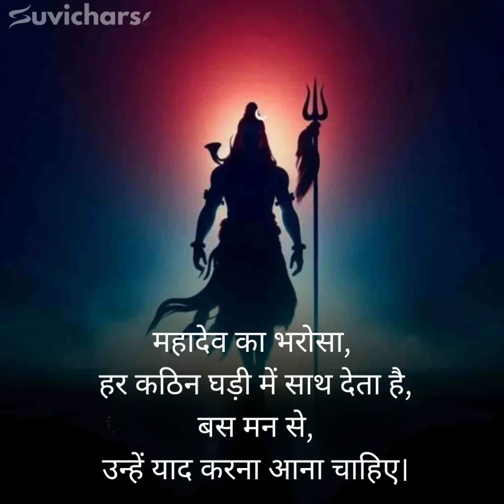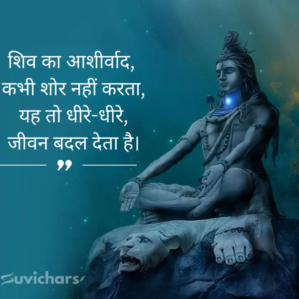 महादेव सिर्फ संहार के देवता नहीं, बल्कि सृष्टि के संतुलन और भक्तों की आस्था का आधार हैं। जो पूरे संसार को संचालित करते हैं, वही हर भक्त की चिंता और विश्वास का भी पूरा ध्यान रखते हैं। यही कारण है कि कठिन समय में सबसे पहले जुबान पर शिव का नाम आता है। Mahadev Suvichar उसी अटूट विश्वास, धैर्य और आत्मबल को शब्दों में व्यक्त करते हैं, जो शिव भक्ति की असली पहचान है।