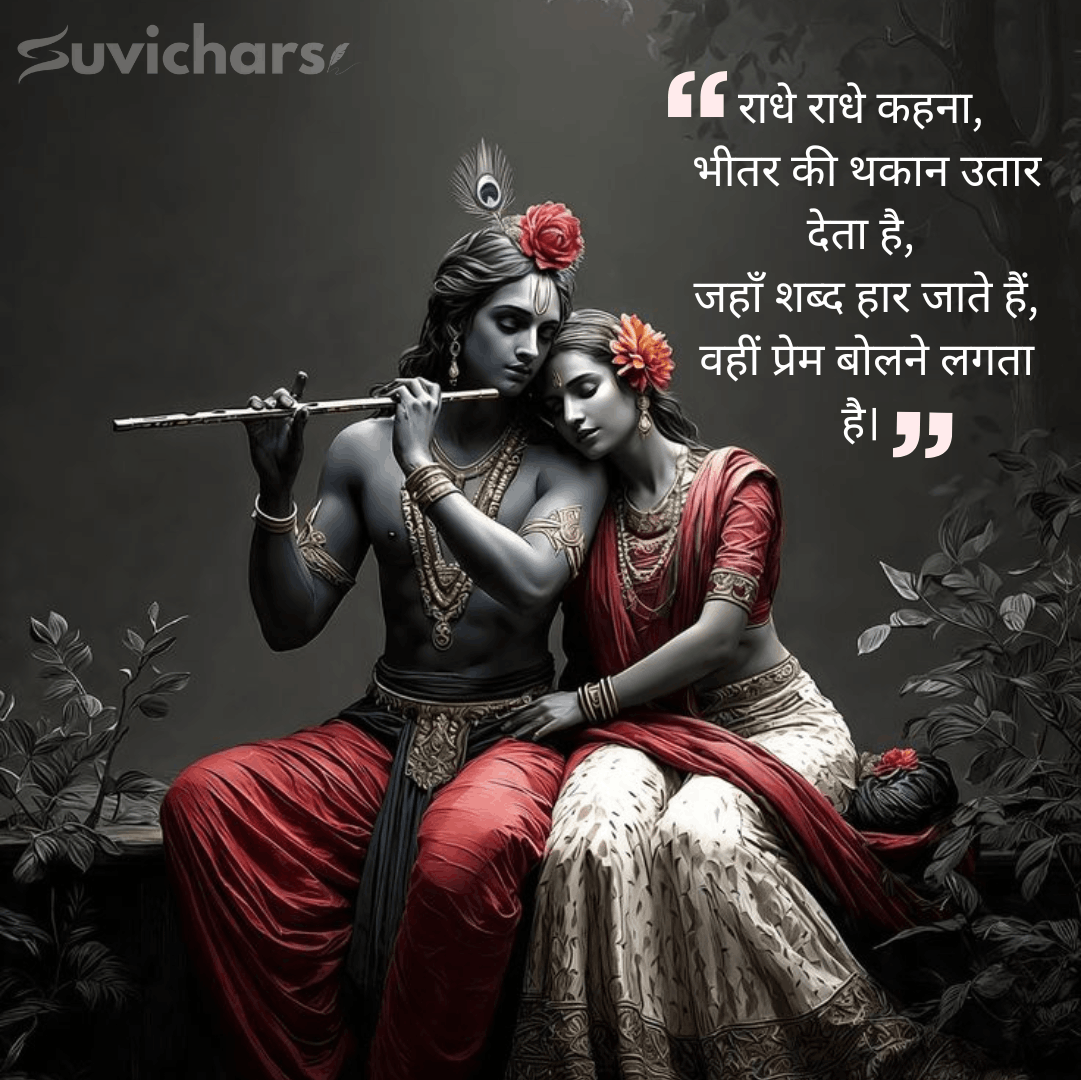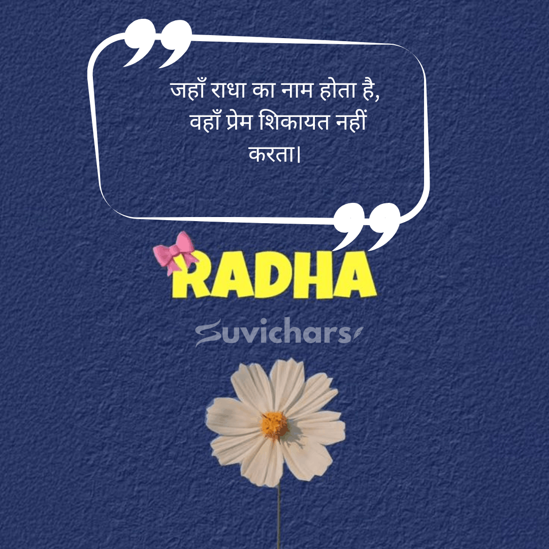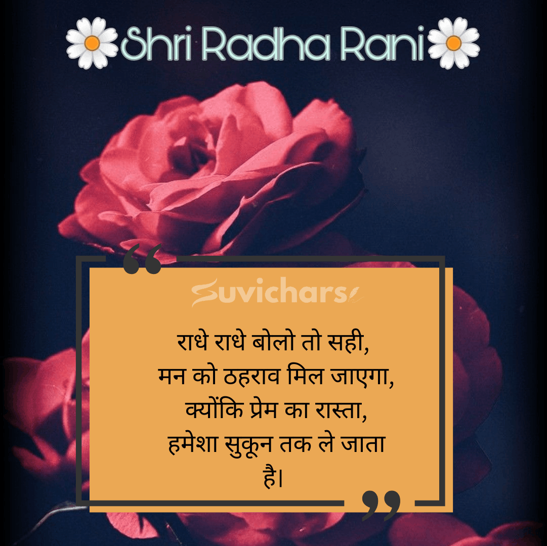 suvichar आपके लिए लेकर आया है चुनिंदा और भावपूर्ण Radhe Radhe Suvichar, जो प्रेम, विश्वास और भक्ति की भावना को शब्दों में पिरोते हैं। इन सुविचारों को पढ़कर न केवल मन शांत होता है, बल्कि जीवन को सकारात्मक दिशा और अंतरात्मा को शक्ति मिलती है।