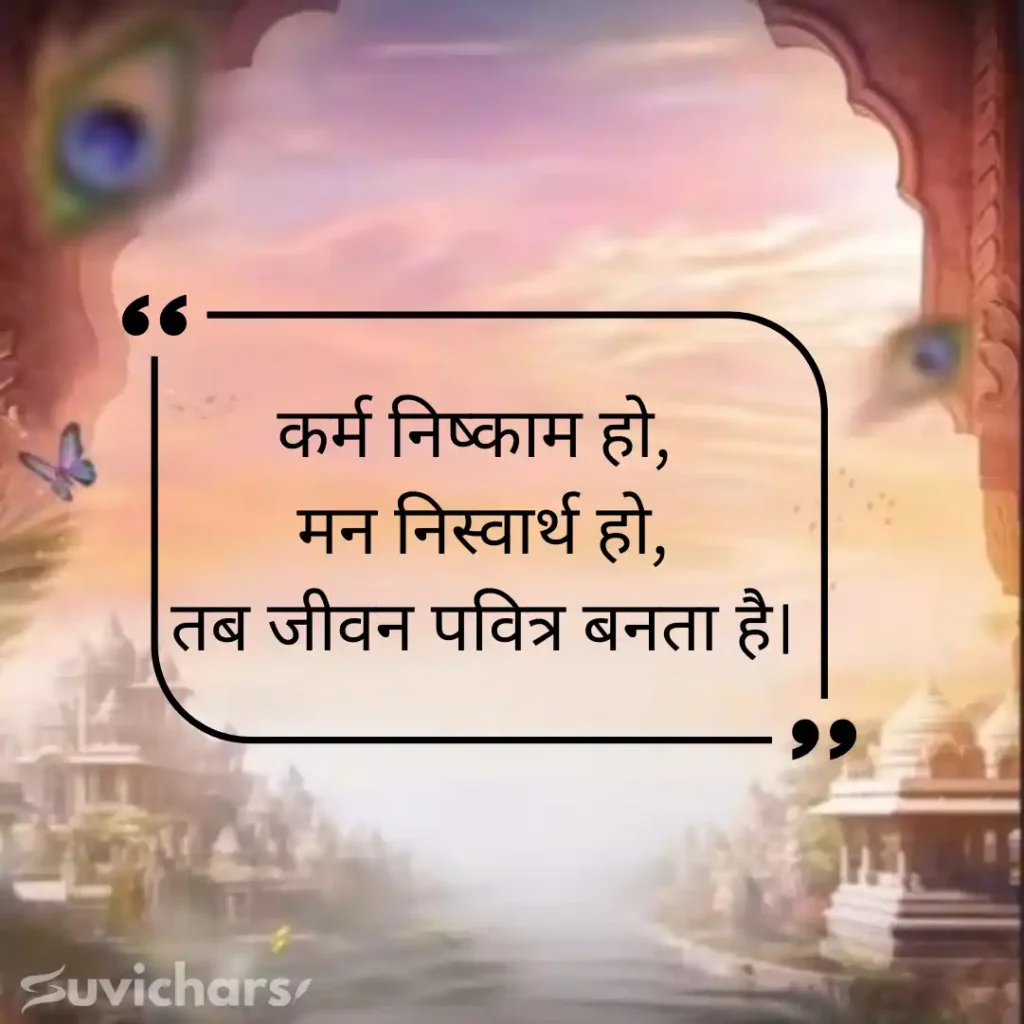 कर्म निष्काम हो, मन निस्वार्थ हो, तब जीवन पवित्र बनता है।