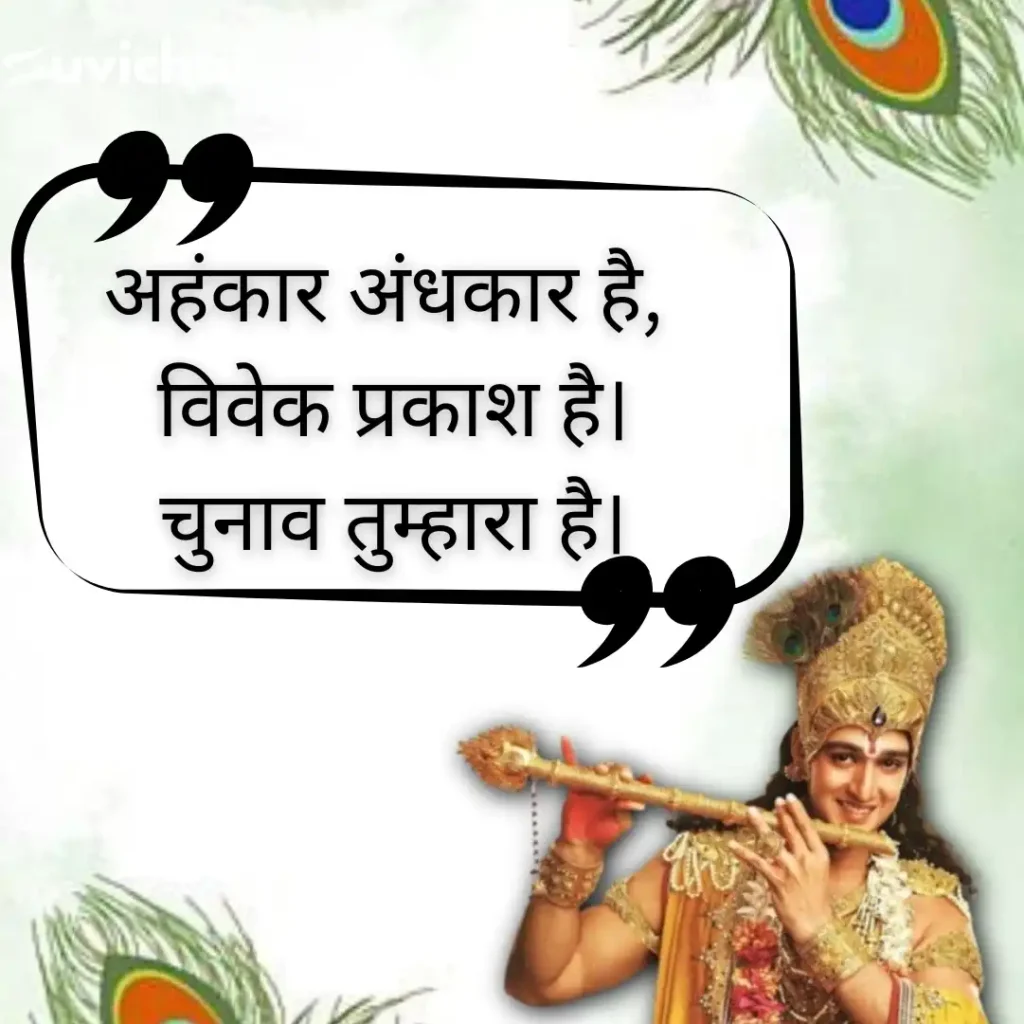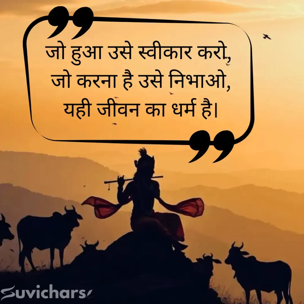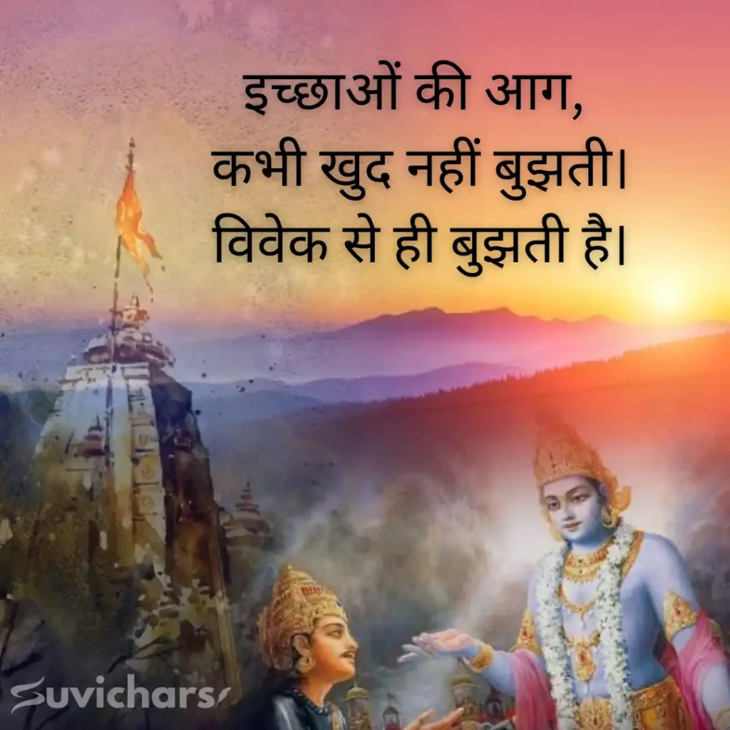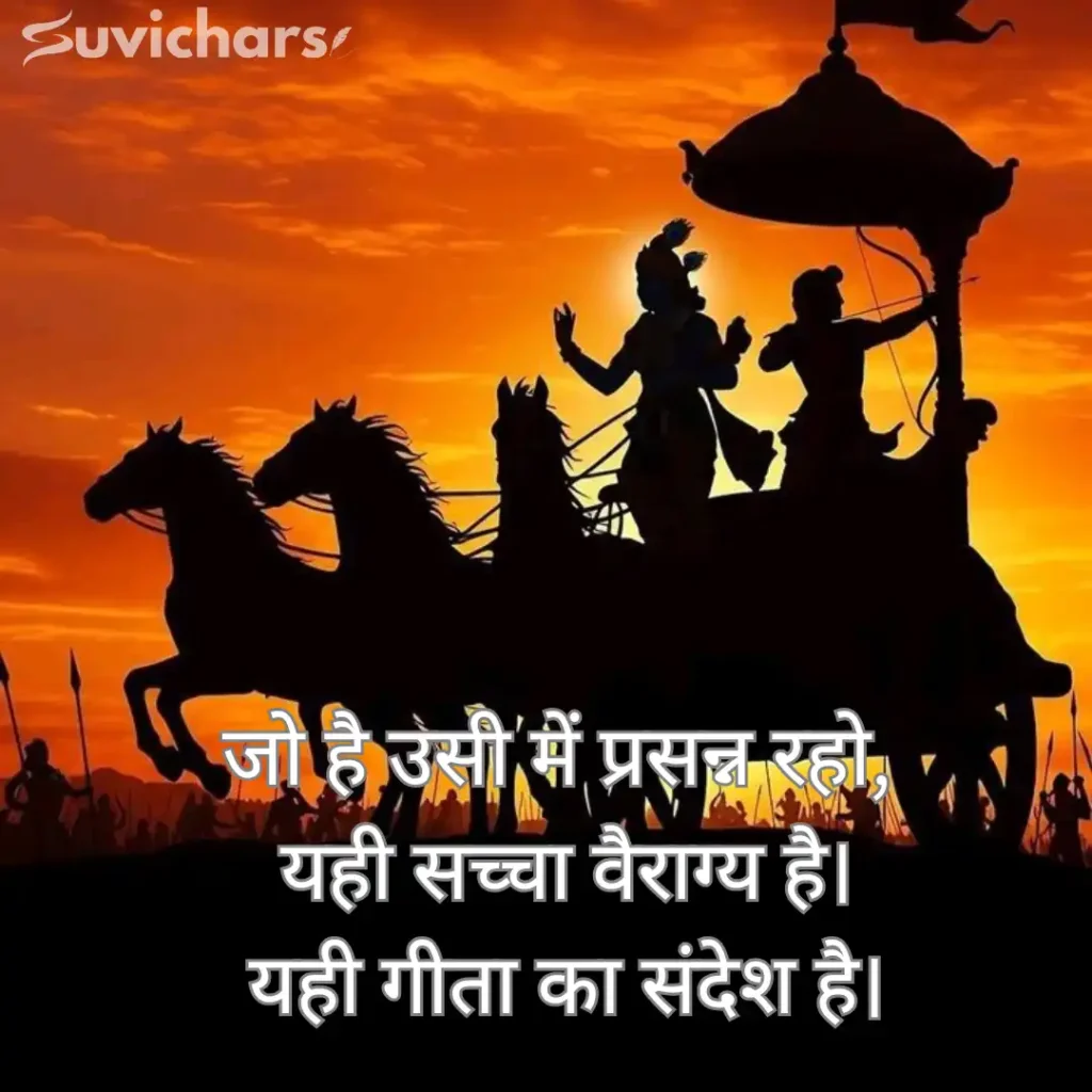 अगर आप जीवन में शांति, सही दिशा चाहते हैं, तो suvichar पर दिए गए ये Suvichar Geeta Gyan आपके लिए सही रास्ता हैं। Krishna Updesh, Karma Yoga जीवन बदलने वाले गीता सुविचार पढ़ें और जीवन को और सरल व आसान बनाएं।